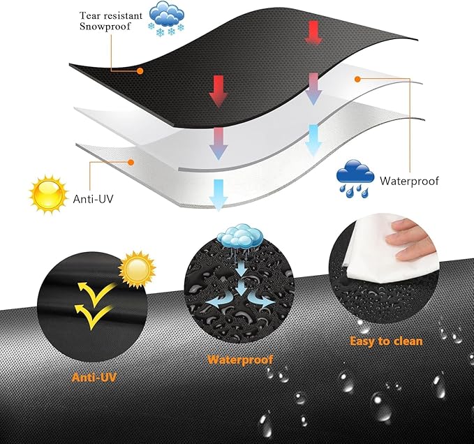 - The kennel roof cover is made of 420D Oxford fabric with nano-material triple coated interior, waterproof strips added to the seams, and double stitched seams, which can withstand up to 8,000MM of water pressure and helps to withstand sunlight, snow, and rain.