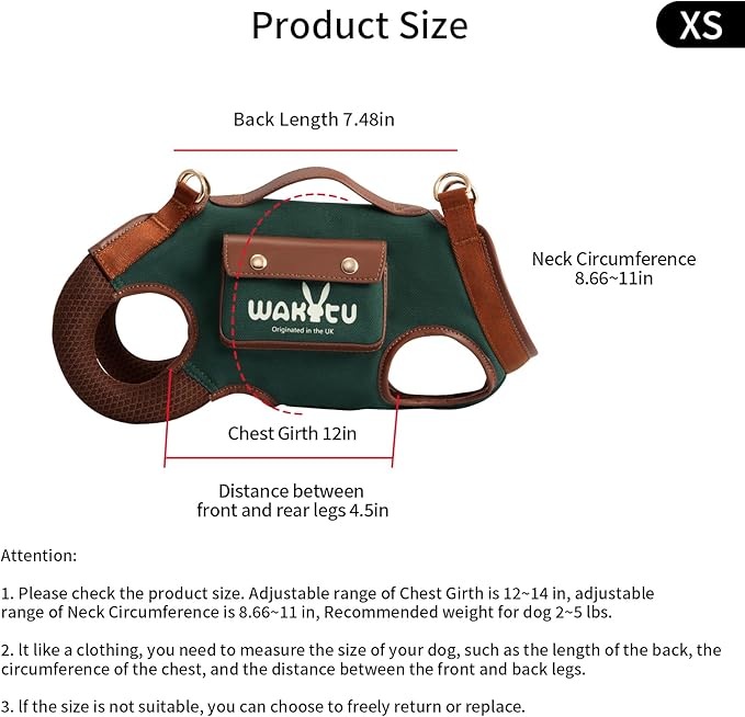 Dog Lift Harness Dog Carrier Dog VES Harness Adjustable Dog Leash with Small Puppy Treat Bag(Green,XS)