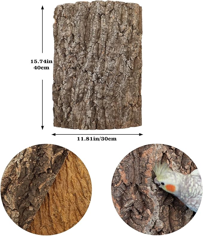 - Dual-Function Perch & Background: Each cork bark panel doubles as a sturdy perch—large enough for standing, playing, and resting—and as a decorative backdrop. Transform any cage or enclosure into a naturalistic habitat that both looks great and enriches your pet’s environment.