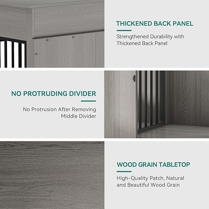 - 2-in-1 Dog Crate with Removable Divider_his 2-in-1 dog crate furniture features a detachable partition that allows you to create two independent spaces for your pets or remove it to create a single large cage for large dogs or more interactive play. Perfect for housing two medium or large dogs with separate or shared living arrangements.