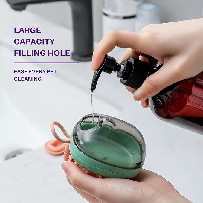 2-in-1 Pet Grooming Brush & Silicone Bath Massager for Dogs and Cats Soft Bristle Deshedding Comb, Shampoo Dispenser, Skin-Friendly, Easy to Hold & Clean