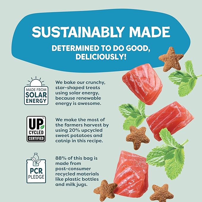 - Cat Treats That Support Digestive Health: Chillin has never been easier or tastier! Our fresh Shameless Pets Crunchy Cat Treats (Catnip N Chill Tuna) may cause a little fun followed by a trip to the couch. These crunchy, star-shaped, bite-sized treats are made with tuna, sweet potatoes, catnip and packed with both pre & probiotics, which help support digestion! Includes one 12 oz bag.