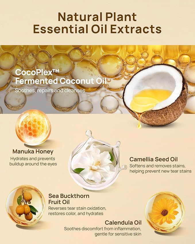 - Rapid Penetration for Deep Nourishment - Advanced small molecule essential oil technology penetrates faster than traditional formulas, deeply nourishing the skin around the pet's eye area while forming a protective barrier against irritants. This dog tear stain remover is ideal for sensitive eyes, with gentle absorption that won't clump or leave residue, eliminating extra cleaning hassles.