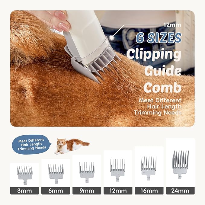 - 【Ultra-Quiet Operation for Stress-Free Grooming】Designed with your pet’s comfort in mind, this grooming vacuum operates at ultra-low noise levels (≤65dB), significantly reducing anxiety for sensitive pets. Groom with confidence, knowing your pets will stay calm and comfortable during every session.
