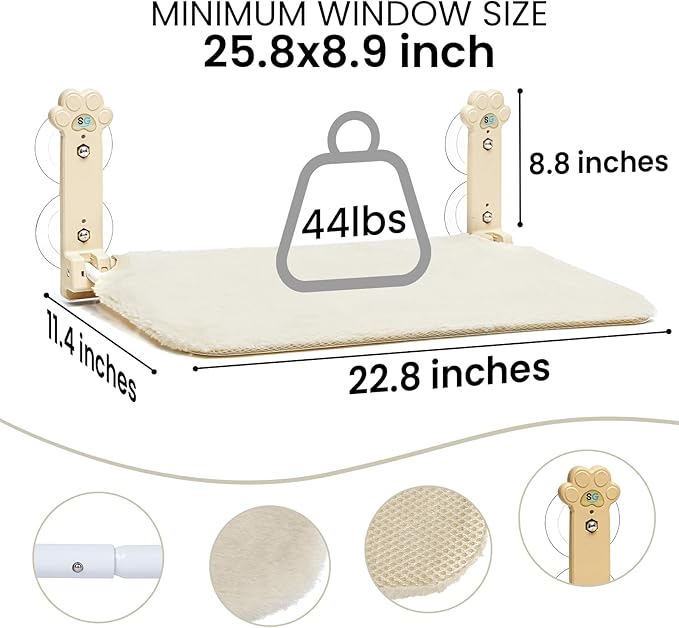 - 【Easy Installation】Installation with no tools is required. Just attach the suction cups to any window, and your cat will be ready to enjoy cat window bed immediately!