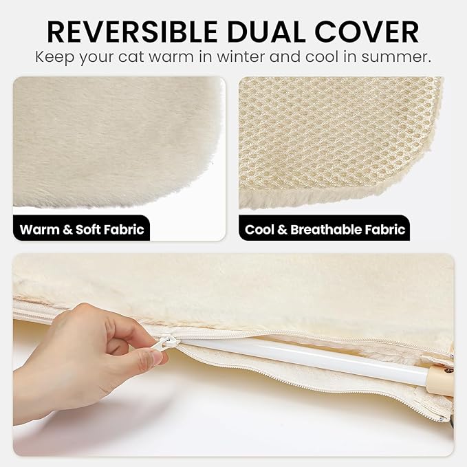 - 【Reversible Fabric】Sangoodier cat window perch has a soft fabric side for winter use, while the other side features breathable mesh for summer comfort. With a convenient zipper design, you can easily switch fabrics, and the cover is removable for machine washing.