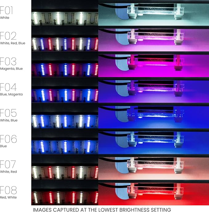 - Easy Operation & Flexible Use: Features a user-friendly inline remote control for adjusting brightness, colors, and light timer. The waterproof, submersible aquarium light design allows underwater use or convenient mounting in sumps, making this refugium light highly adaptable.