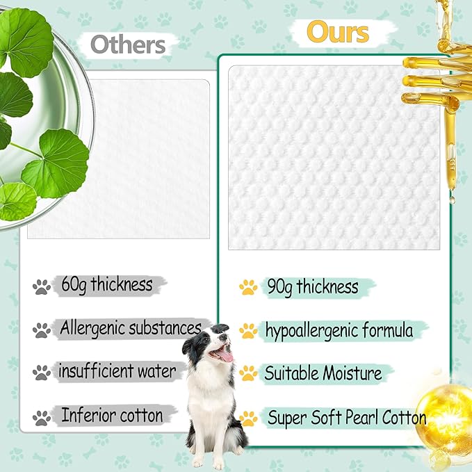• Friendly and Helpful - Especially suitable for pets that have just had surgery, dogs that are stressed about bathing, old pets or infirm pups and other times when bathing is inconvenient, The pet glove wipe very friendly and helpful for pet wrinkle care, Daily Care and Travelling.