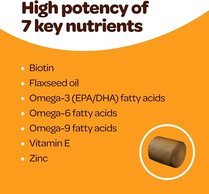 Skin and Coat Supplement for Dogs | Nourishing Omega 3 for Dogs with EPA DHA Krill Oil and Vitamin E | Dog Skin and Coat Supplement | 1 Chew up to 75lbs | NASC Certified & Made in The USA | 60 Chews