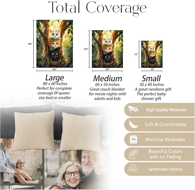 Cute Kitten Trio Blanket, Soft Warm Cozy Adorable Cats Throw Blanket Gifts for Adults Kids Women, Lightweight Fuzzy Comfy Flannel Blankets for Couch, Travel, Bed, House Decor 50×40 Inch