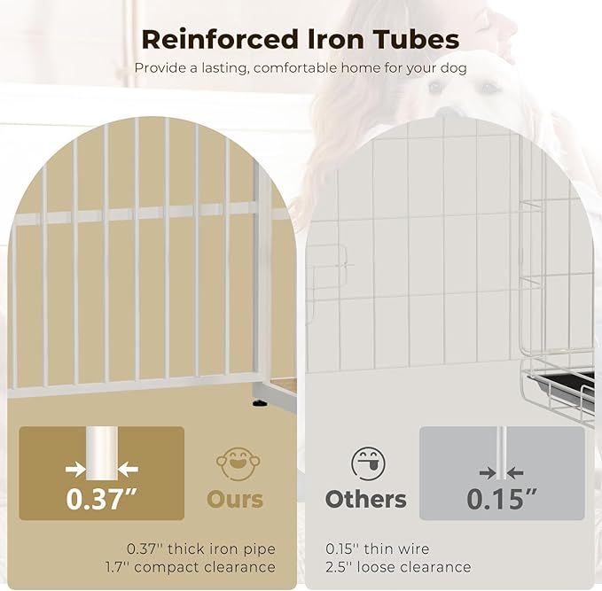 - _turdy and Chew-Resistant_his dog crate furniture is made of premium particle board and iron pipe, which is stronger and more chewy; It will accompany your dog throughout the growing stages; It's an ideal gift for your dog