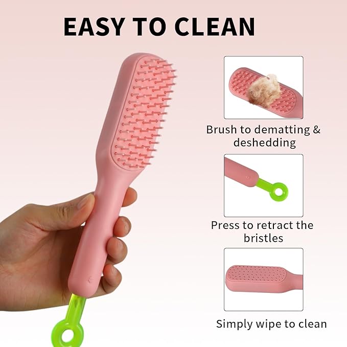 - Easy to Clean: Bunny brush can remove all residual hair from the comb teeth with just a gentle push. In addition, the spacing between the comb teeth of retractable hair brush has been precisely calculated, which not only ensures the combing effect, but also ensures that the cleaning process is simple and quick, eliminating tedious cleaning steps, allowing you to spend more time with your pet.