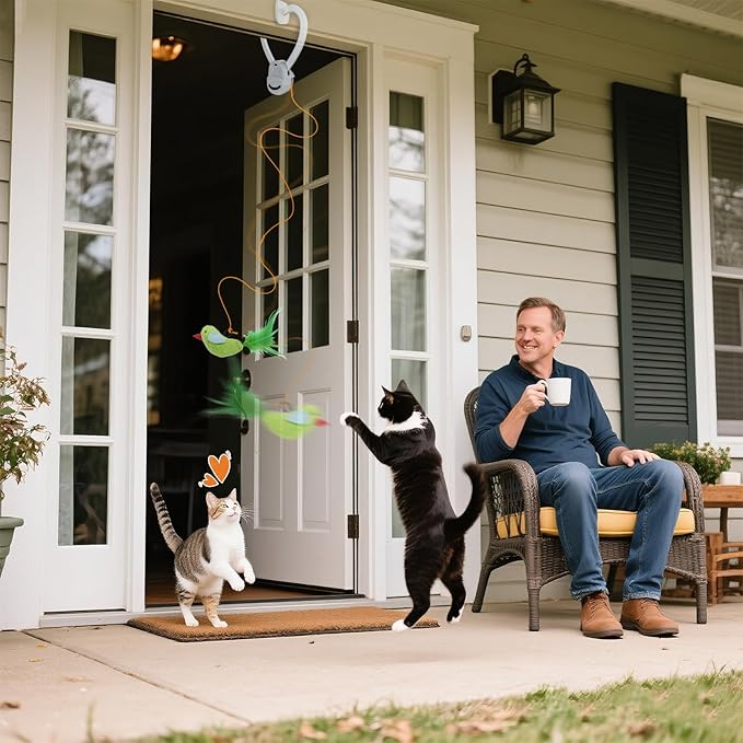 • Cat Interactive Toys Fun – Hanging for Multi-cat stimulation toys for indoor cats Hanging mode (elastic string + cat flying bird toy) to prevent boredom. cat entertainment for indoor cats, exercise, and reducing destructive behavior in indoor cats-cat enrichment toys for indoor cats. Hanging bird toy for cats is suitable for kittens and adult cats. The automatic cat toy for doorway stimulates cats' hunting instincts and agility.