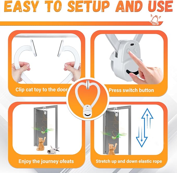 • Cat Toys Doorway Cat Toy for Indoor Cats – Cat toys for bored indoor adult cats, with Long-Lasting Playtime. This electric cat toys interactive provides extended play sessions. Automatic cat toys for indoor cats keep your kitty engaged-retractable cat toy cat hanging toys for indoor cats Boredom busters for cats. Best cat toys for bored indoor cats