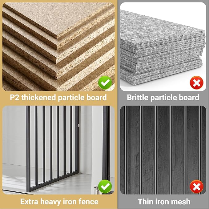 • Sturdy Ironwood Construction: Made with P2 grade MDF and steel, offering comfort, durability, and easy cleaning compared to metal crates.