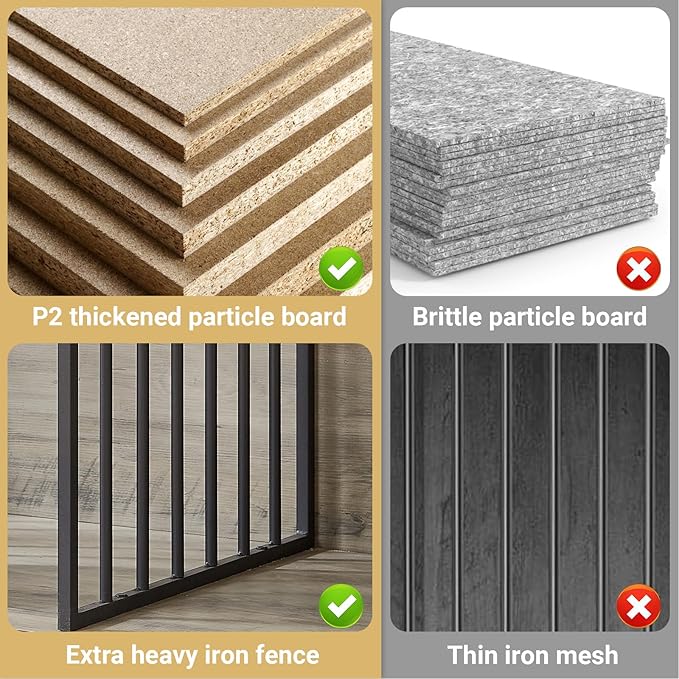 • Sturdy Ironwood Construction: Made with P2 grade MDF and steel, offering comfort, durability, and easy cleaning compared to metal crates.