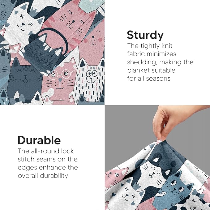 - Versatile & Stylish: With its cute cat design and generous 50"x60" size, this blanket is not only functional but also a stylish addition to any home decor. Perfect for cat lovers to showcase their passion in a cozy and fashionable way!