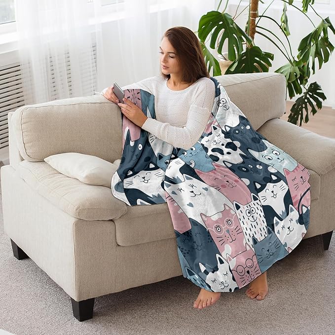 Cat Blanket, Cats Gifts for Girls Women, Cat Gift for Cats Lovers, Birthday Gifts Decor Throw Blanket 50"x60"