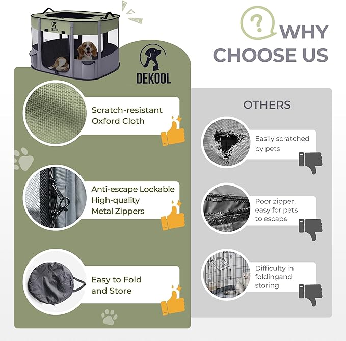 - High Quality and Safety: The puppy playpen is crafted from Oxford cloth, a waterproof material. The mesh is scratch-resistant, and the four-panel design strengthens the seams and provides better protection for your pet.
