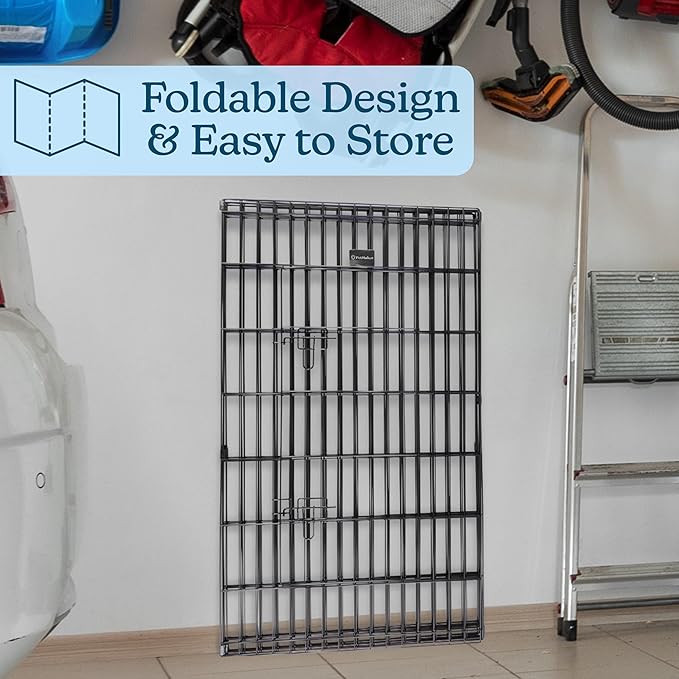 - EASY ACCESS DOOR - The hassle-free dog kennel has a step-through access door for easy entering and exiting without having to lift your animal. The swinging gate on the puppy playpen has dual latches to keep your pets safe and secure while indoors or out.