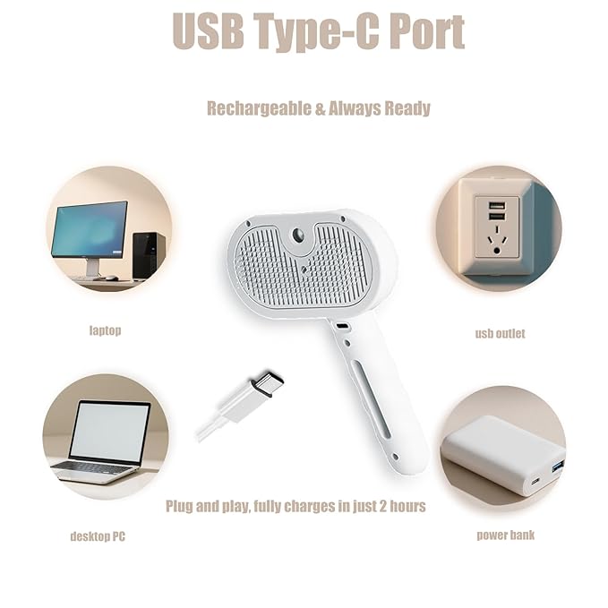 - 【Type-C Interface] 】- Equipped with a Type - C interface; this steam brush allows for easy charging and can be used anytime; whether you're at home or outdoors. It's an essential tool for pet travel. No matter where you are; as long as there's a power source; you can use the steam function to keep your furry friend looking their best.