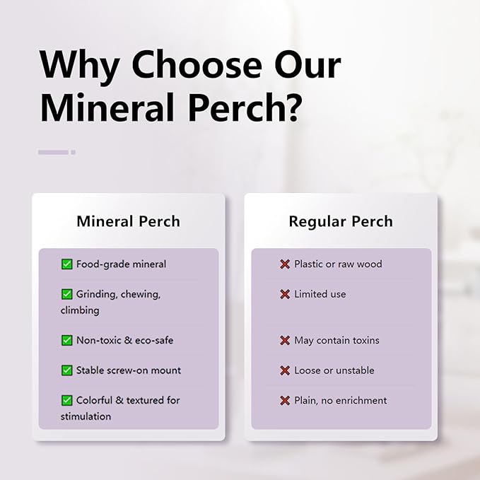 - ✅ 100% Natural & Safe Materials ---- Crafted from 100% porous natural minerals and food-grade coloring, our bird perch toys are completely safe for your feathered friend. Colors won’t fade even after washing. A trusted choice for parrot cage accessories that prioritize pet safety.