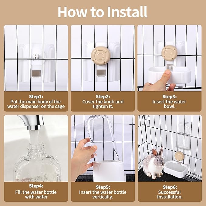 - Automatic Gravity Water Dispenser: Our bunny water bottle refills itself as your pet drinks, ensuring a constant supply of fresh water. The smart design prevents overflow by stopping the flow once the water bowl is full, keeping your pet's cage clean and dry