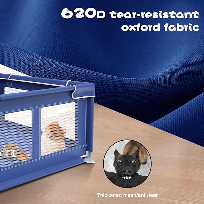 - PREVENT RIPPING: The fabric of the enclosure for the puppy playpen is made of 620D waterproof Oxford fabric, which can effectively prevent pets from ripping and chewing, no need to worry about tearing.0.06mm steel tube can effectively prevent bending problems, providing a warm and sturdy home for pets!