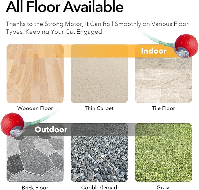- Powerful Motor Performance: Designed to roll smoothly on various floor types, thanks to its strong motor, keeping your cat engaged. The interactive cat toy is made with a silicone surface, ensuring your cat's safety during playtime. The moving cat toys for indoor cats is your best choice