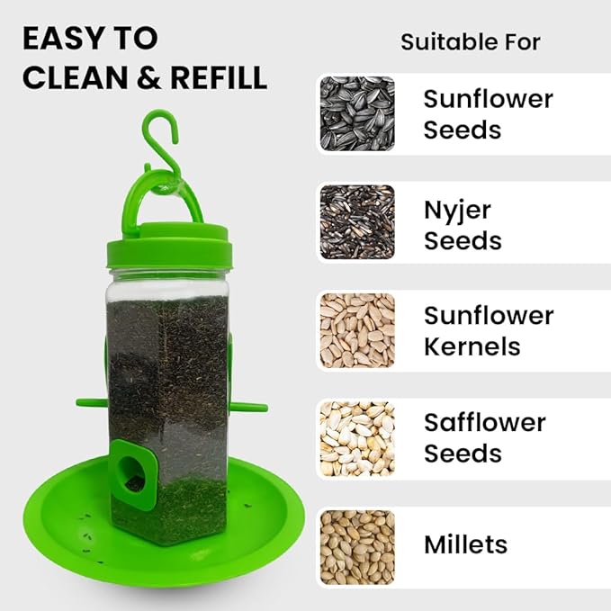 • FEEDING CAPACITY: Tube feeder design allows for efficient seed distribution and easy refilling when needed