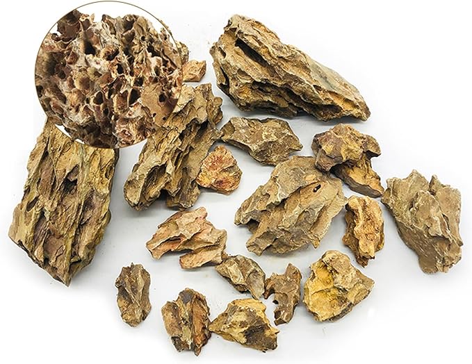 - NATURAL BEAUTY: Dragon stone, also known as clear flow stone, is a fascinating natural stone known for its unique honeycomb holes and rich texture, adding natural beauty and layers to aquariums and fish tank aquascapes.