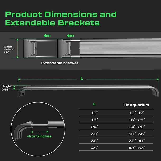 - IP67 Waterproof: Our fish tank light uses the latest full coated glue technology technology to protect the circuits and lamp beads, leaving no gaps for complete safety. Even submerging the entire light body in water for a short period will not affect its operation, but please avoid prolonged underwater use.