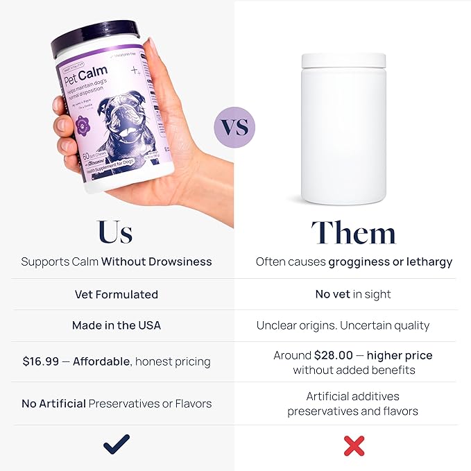 - DAILY CALMING SUPPORT - Helps dogs stay relaxed during vet visits, car rides, fireworks, grooming, or routine changes. Ideal calming chews for dogs, dog calming treats, or puppy calming chews for everyday calming support in stressful situations.