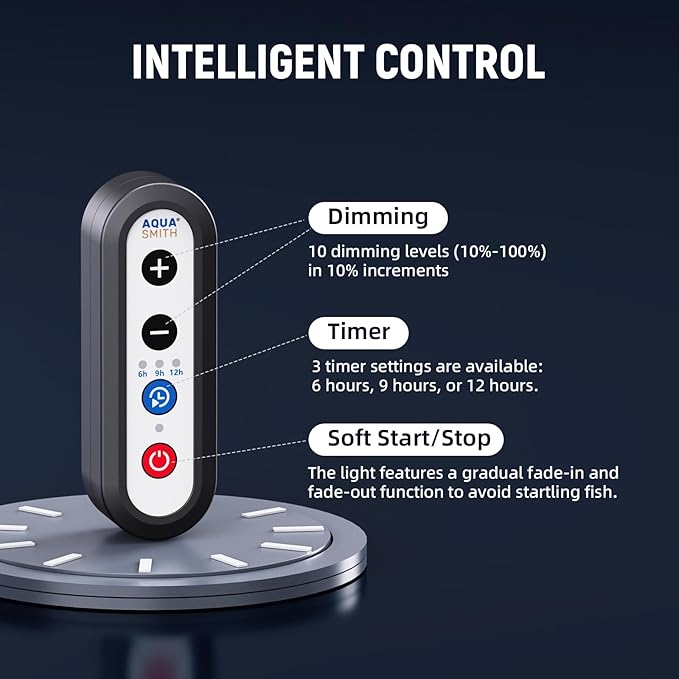 - Adjustable Brightness & Timer: You can set the light's brightness from 100% down to 10% with 10 distinct levels, perfect for matching your preferences or your tank's lighting needs. Plus, use the timer button to schedule your daily illumination for 6, 9, or 12 hours.