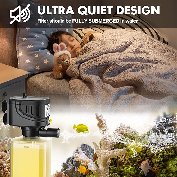- 4-in-1 Multifunctional Design – More than just a fish tank filter, it combines filtration, water pumping, wavemaking, and air supply into one compact unit—saving space while keeping your aquarium crystal clear and oxygen-rich.