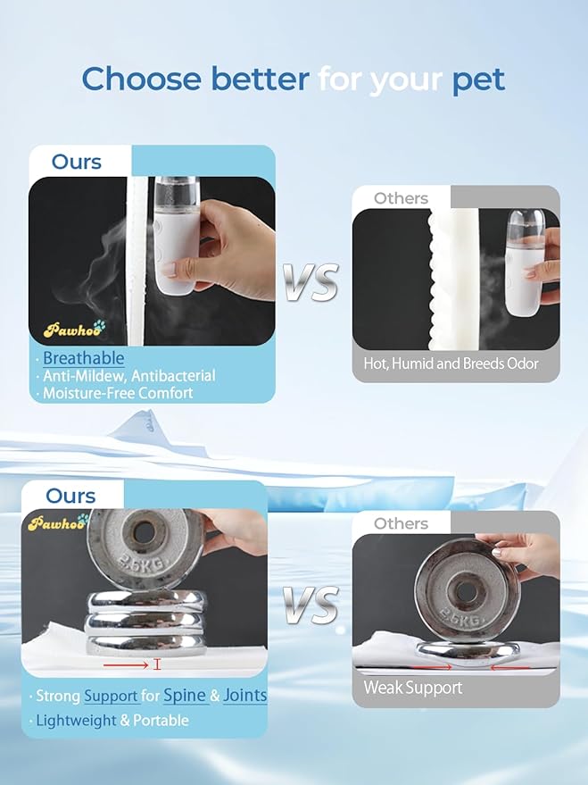 - 🐶[INNOVATIVE DESIGN FOR YEAR-ROUND COMFORT]: The latest iteration of the Pawhoo Pet Cooling Mat is versatile, two functions in one. The top layer is made of 100% nylon cooling fabric with Arc-chill cooling technology, a 1cm(0.4inch) thick 3D mesh for breathability and support, 400gsm rigid cotton, perfect for warm weather. The back is made of super soft Dutch velvet for warmth, which can also bring warmth and comfort in the colder months. Simply flip it to suit the season or your pet's preference.