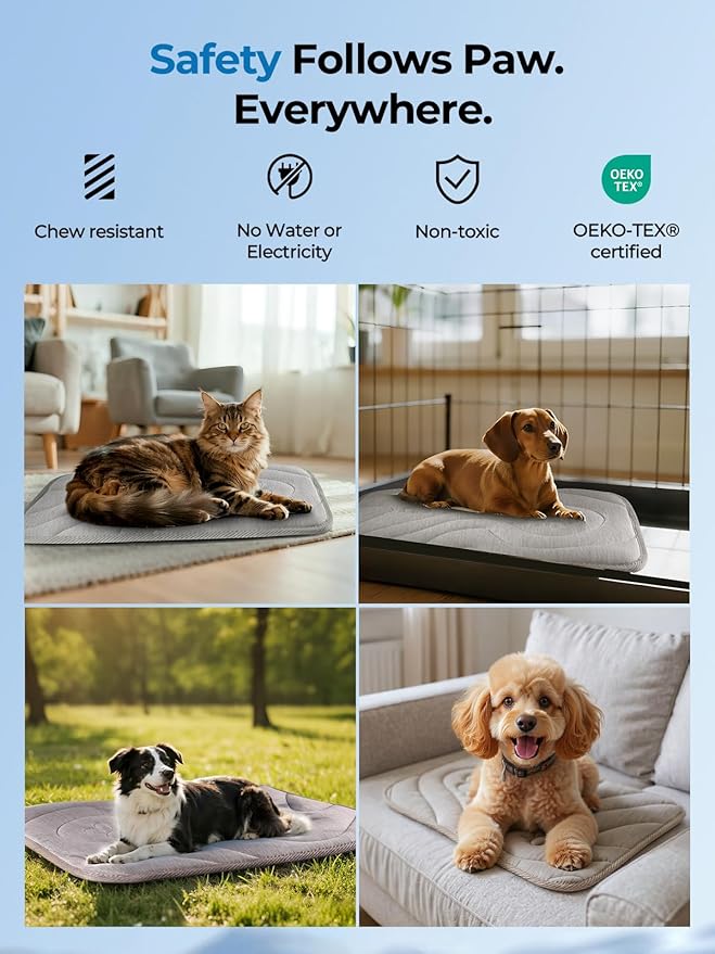 - 🐰[SAFE & PET-FRIENDLY MATERIALS]: Made with non-toxic, latex-free, and skin-friendly fabrics. Every layer is OEKO-TEX compliant and carefully selected to ensure your furry companion’s safety and comfort. This mat is gentle on your pet’s skin and safe for daily use. No harmful chemical, only clean, trustworthy comfort.