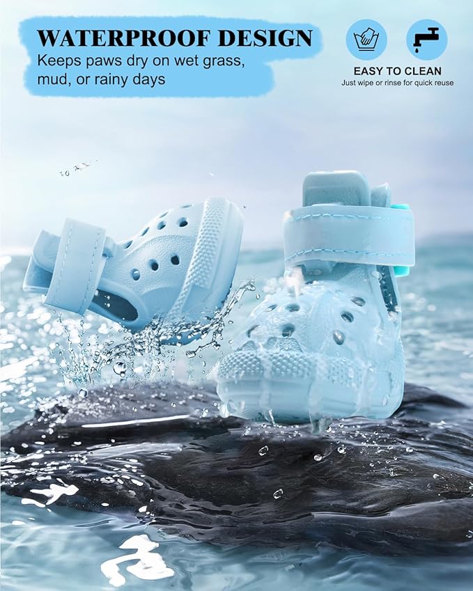 - Waterproof & Easy-to-Clean Outer Layer - The waterproof material prevents moisture, mud, and debris from entering the shoe, making them perfect for rainy days or snowy outings. Cleaning is simple—just rinse or wipe down after outdoor use, keeping your pet's paws dry and hygienic.