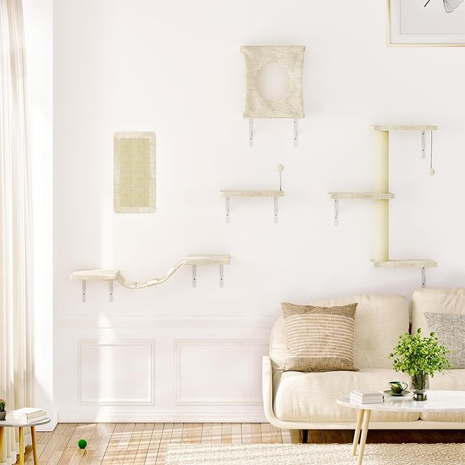 - Space-Saving Design - Mounts to your wall, freeing up valuable floor space – perfect for small apartments or modern homes. This indoor cat wall shelves gives your kitty a dedicated space to climb, jump, and lounge, significantly reducing their impact on your living area.
