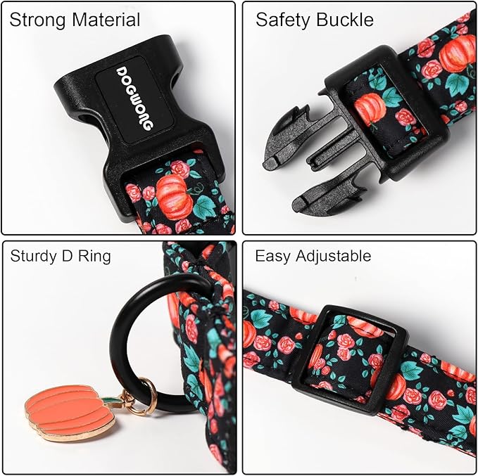 DOGWONG Fall Dog Collar, Pumpkin Floral Dog Collar Adjustable Soft Halloween Girl Pet Dog Collars Cute Puppy Necklace for Small Medium Large Dogs