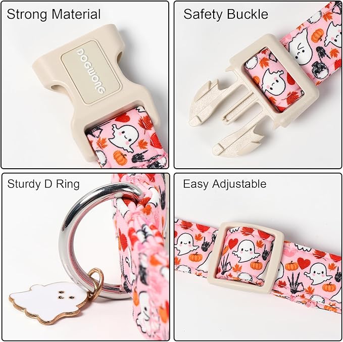 DOGWONG Halloween Dog Collar, Pink Halloween Dog Collar Adjustable Soft Cute Ghost Girl Pet Dog Collars Cute Puppy Necklace for Small Medium Large Dogs