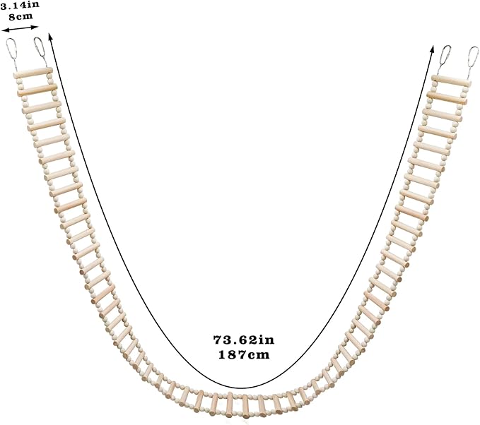 - Multi-purpose: This ladder can be used as a hanging ladder in a rat cage, suitable for various small and medium-sized birds, such as parakeets, cockatoos, macaws, and parrots, and can also be suitable for hamsters, mice, gerbils, chinchillas and other small animals for climbing exercises.