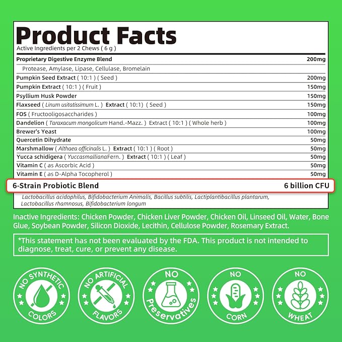 - Support Balanced Digestive Function: Our gentle chew combines a carefully selected 6-strain Probiotic Blend and a specialized Digestive Enzyme Blend to help your dog process their food smoothly and maintain a comfortable gut environment