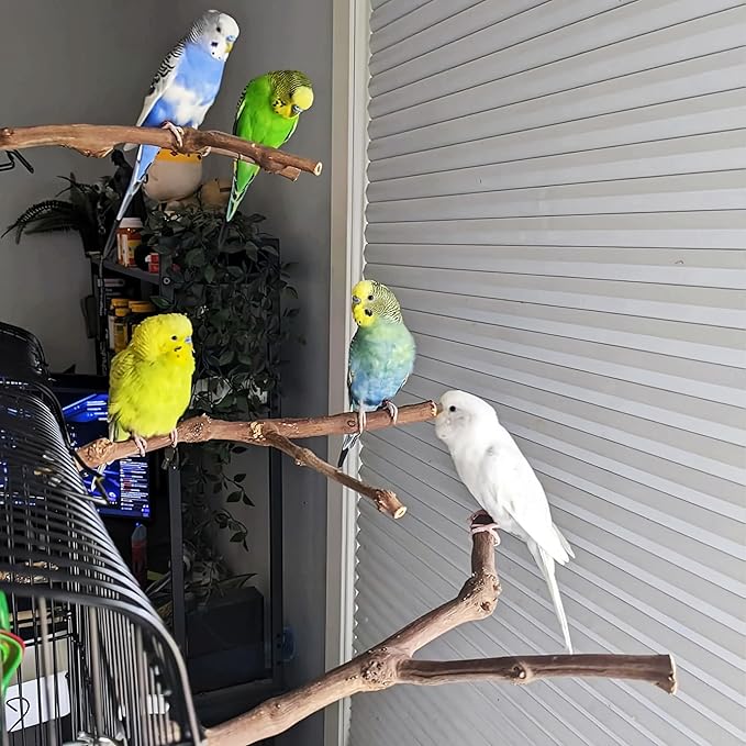 - Multi-functional:The irregular surface of natural wood parakeet perches can comprehensively exercise grip strength of feet and muscles of legs.Natural and chewable material of bird perch branch meet beak grinding need of bird ,effectively relieve stress and anxiety