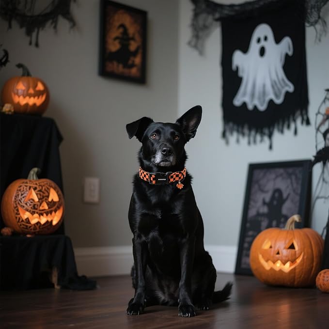 DOGWONG Fall Dog Collar, Orange Checkered Dog Collar Adjustable Soft Cute Pet Dog Collars Cute Plaid Puppy Necklace for Small Medium Large Dogs