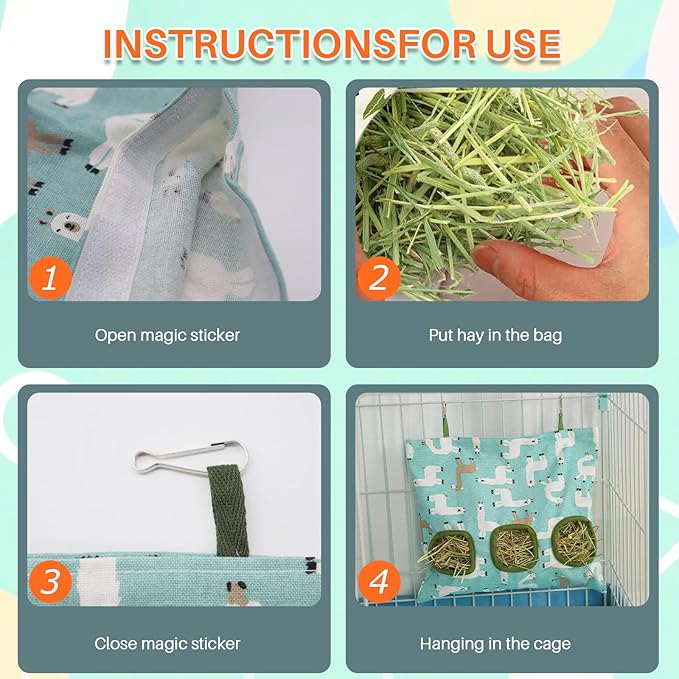 - Outstanding Cotton And Linen Material: This rabbit hay feeder is made of outstanding cotton and linen material. It is light, strong and not easy to break or tear. This material has good air permeability, Guinea pig hay holder can effectively maintain the freshness of hay, allowing your pet to enjoy fresher food.