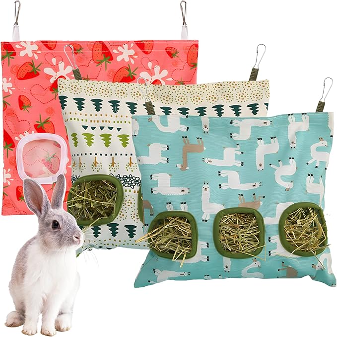 - Diverse Pattern Options: We have carefully designed three different patterns of hay bag for rabbits, including forest, alpaca and strawberry patterns, allowing your pets to enjoy delicious food while also experiencing visual pleasure. Each pattern has been meticulously drawn, with bright and creative colors, Guinea pig hay bag can attract the attention of pets and also add a touch of brightness to your home.