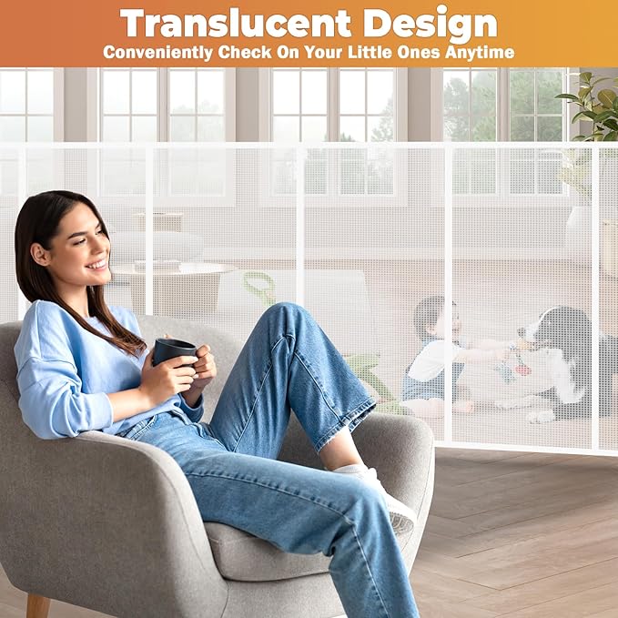 - 【Reinforced with Fiberglass】We've incorporated fiberglass support strips into the mesh, effectively preventing it from sagging during use. This design ensures that the mesh retracts smoothly without wrinkling, enhancing its overall functionality. It’s a practical feature that significantly improves the user experience of our child safety gate!