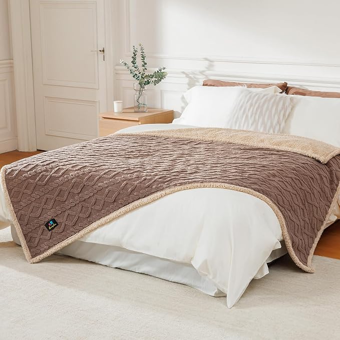 Waterproof Pet Blanket, Liquid Pee Proof Dog Blanket for Sofa Bed Couch, Reversible Sherpa Fleece Furniture Protector Cover for Small Medium Large Dogs Cats, Khaki King Sizeï¼90" x 82"ï¼