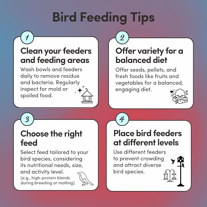 - High Protein & Fiber Formula: With 17.4% protein and 20.5% fiber, this blend supports muscle health, digestive efficiency, and sustained energy for active, intelligent birds.